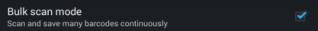 - Enable "Bulk scan mode" in the Barcode Scanner program's option menu.