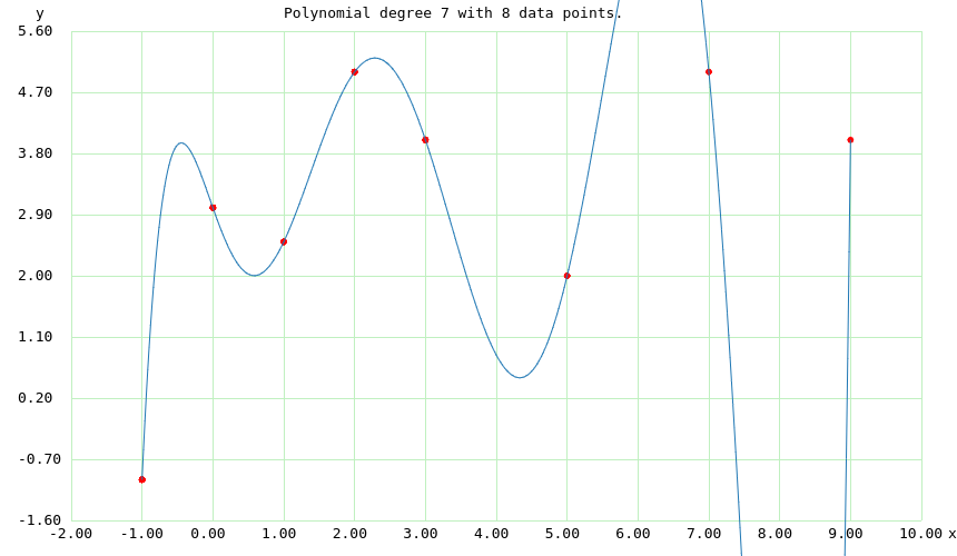 Figure 10: Polynomial Degree 7, Correlation coefficient 1.0000, Standard Error 0.0000