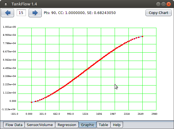 First, copy this small data set into TankFlow's "Sensor/Volume" tab (second from left), while erasing any prior data that may be present: