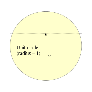 A version of the above equation has multiple applications, so here it is in a simpler, more universal form that provides a partial circle area a for a given argument y within a unit circle: