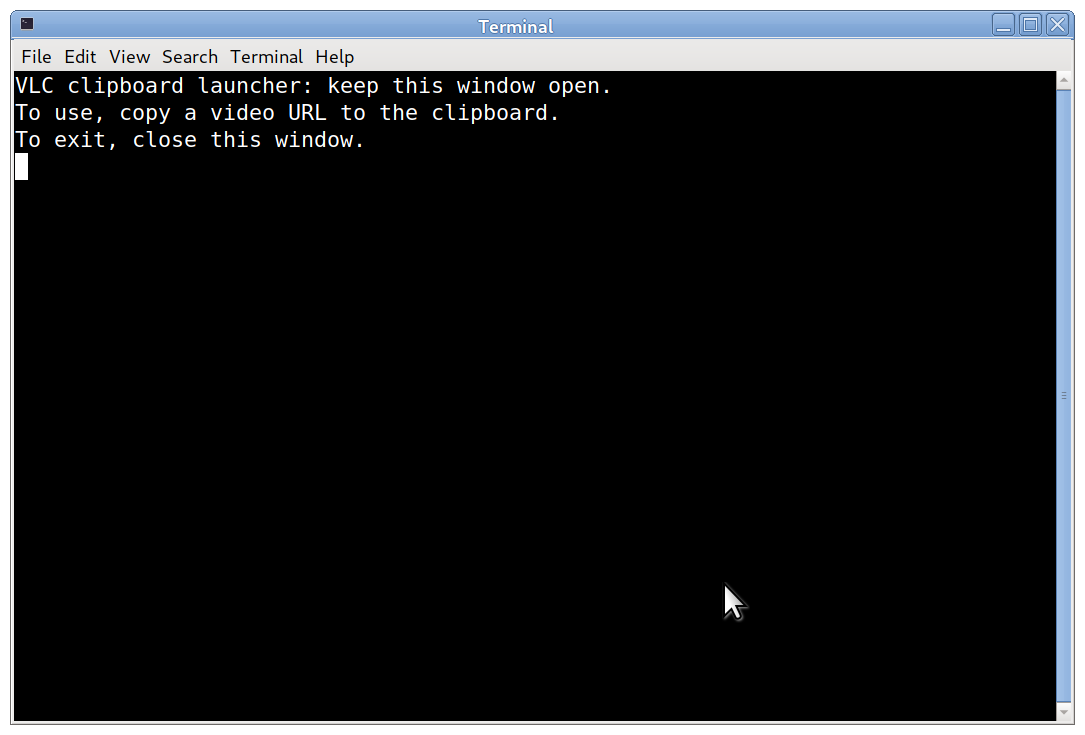 After launching this utility, the user need only visit YouTube or another video hosting site, point to a video of interest, right-click and select "Copy Link Location" (Firefox), "Copy link address" (Google Chrome / Chromium), or similar wording in other browsers, and within a second, this utility will detect the URL on the clipboard, launch VLC and play the video you've chosen2.
