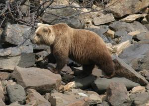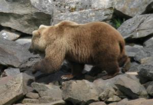 Although I don't go ashore on the Peninsula, I hike quite a lot in other parts of Alaska, and I try to make some noise as I walk along, to give the bears plenty of advance warning. While hiking this year, I had two close bear encounters, and both turned out very much as one would hope. On Bainbridge Island in Prince William Sound, while hiking back from a mountaintop, I got into some rather thick brush, very poor visibility, so I started making a lot of noise as I walked — "Hey, bear!", clapping my hands, that sort of thing — and pretty quickly came within about 50 feet of a bear. The bear quite obviously had been listening to my approach for a while and was not at all startled when I finally came into view — just as one would hope.