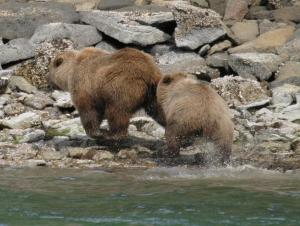 When I visit the Alaska Peninsula I try to arrive during a time of low daytime tides, so the bears will come out and dig for clams. This is fine for me, because I can paddle around and take pictures from the relative security of my kayak or even the deck of my boat if I have placed the boat well.