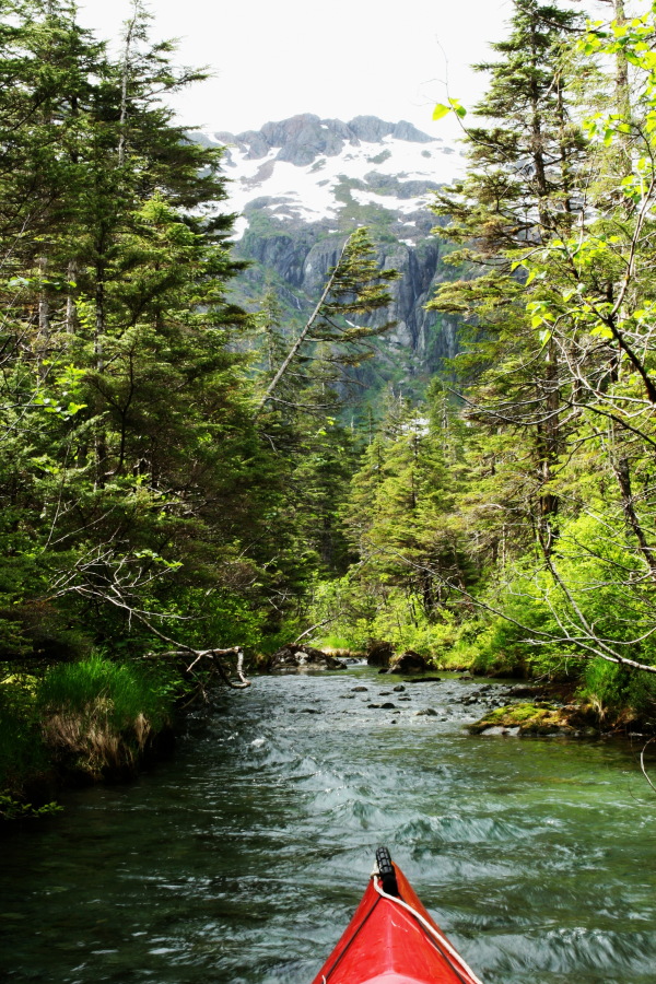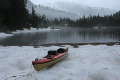 • Unwin Lake, Desolation Sound, British Columbia: Not an Alaska location, but one of my favorite fresh water paddles. Paddle to approximately 50° 7.4' N, 124° 41.4' W, to an obvious trailhead. This is the one location on this list where a set of wheels is essential. Go ashore and wheel your kayak along the trail to the lake. The lake itself is actually in the approximate shape of a horseshoe, with two large bodies of water joined by a small passage. Because of the difficulty of getting a boat to the lake, you will very likely have the lake to yourself.