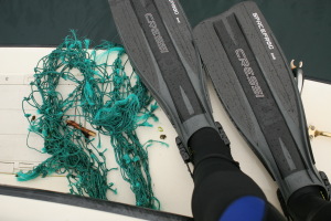 Self-rescue after hitting an abandoned net.