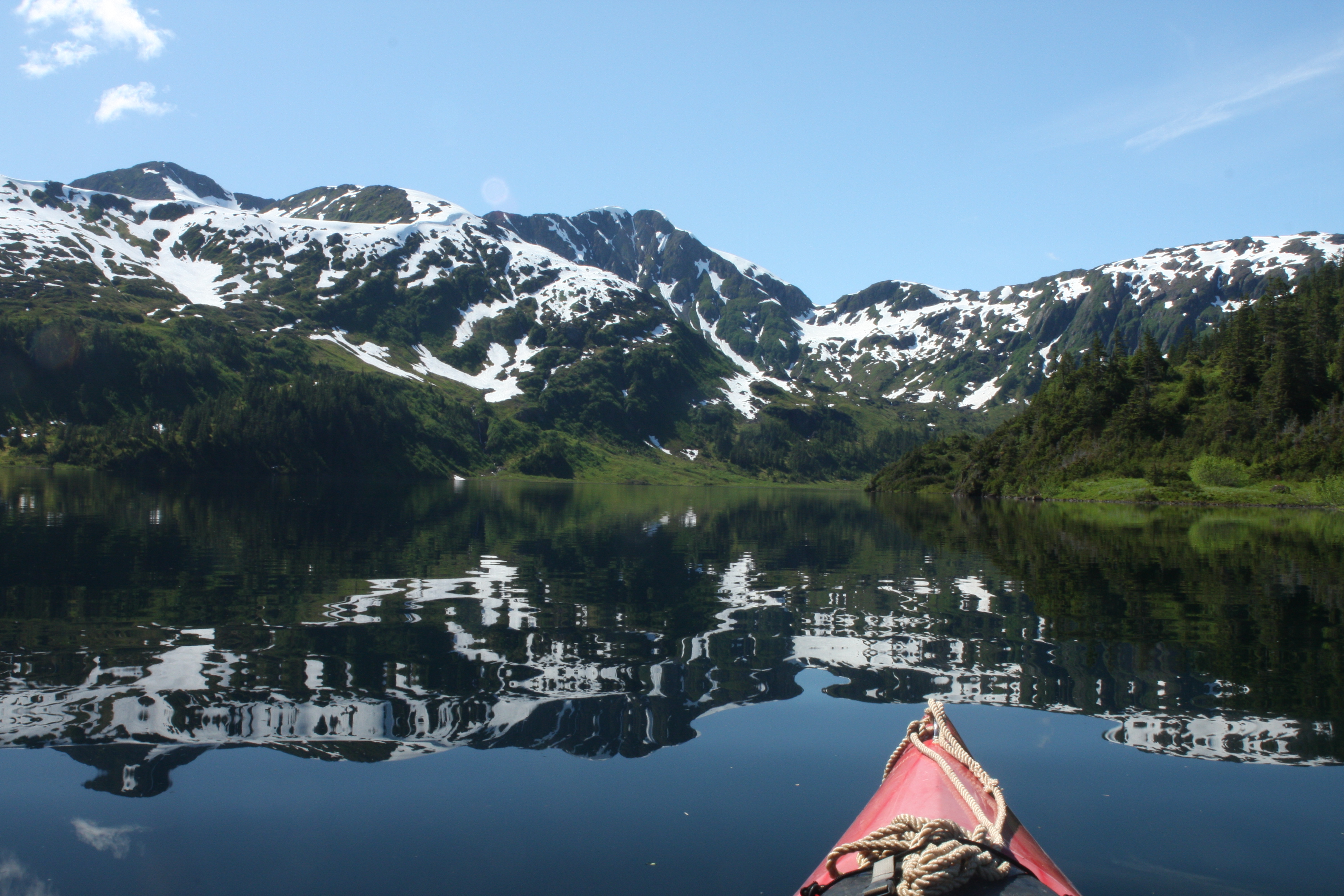 For many years I've visited a small bay called "Three-Fingered Bay", southeast of Whittier in Prince William Sound, anchored there, then dragged my kayak from the anchorage to Shrode Lake (about 1/2 mile through small lakes and mostly grassy terrain), to explore a pretty wilderness environment, rarely visited by humans.