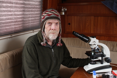 This season I decided to carry along my microscope and examine some salt and fresh water samples collected at places I visit. My reason for taking the microscope is that there are sometimes many days of uninterrupted rain between days suitable for hiking or kayaking, and I like to have fun and productive activities even on rainy days.