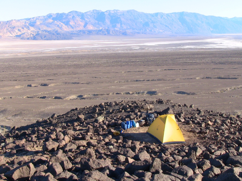 Because the topic is the beneficial effect of travel, I'll close with a picture of my camp at Death Valley, California, that I visit once a year. Getting to this campsite involves hiking from one side of Death Valley to the other with full camping gear. Needless to say, this isn't a popular camp or activity, but it's a pretty wonderful place — remote, often silent, and a great place to think.