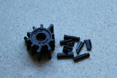 • Removing the old impeller is easier than expected — it's so wrecked that it falls out in my hand.