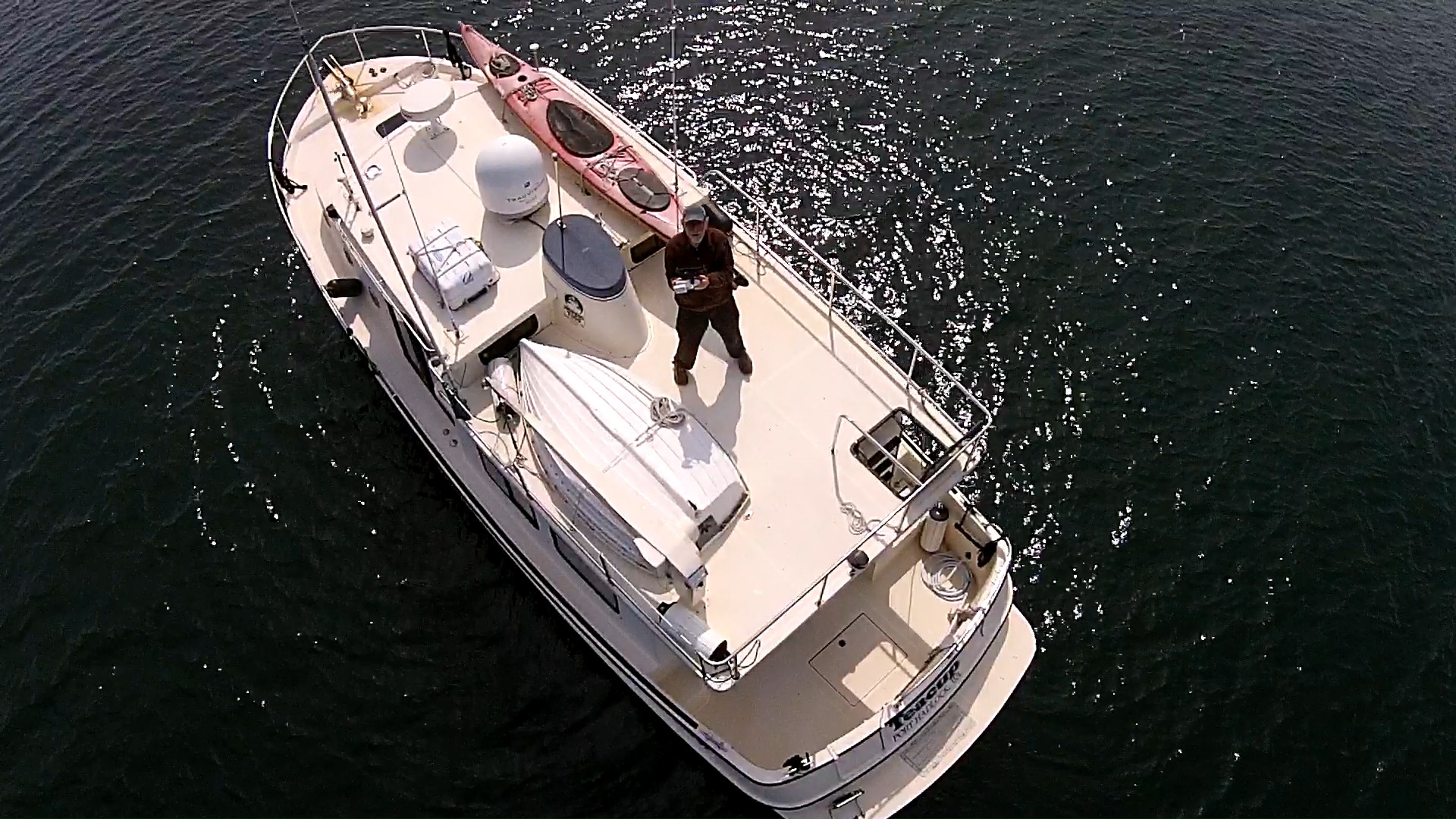 Use your mouse to navigate the image above. Drag your mouse to pan around the image, and use your mouse wheel to change magnification (on touch-screens, use two fingers to zoom in and out). Notice the full-screen control at the upper left. And if you pan directly down to the photosphere's axis of rotation, you will see my boat.