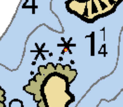 Disclaimer: before getting into a discussion of navigating Long Island's shallow entrance to Cook Bay, I want to emphasize that this is my opinion, nothing more, it has no official standing, and if you use this page's information for navigation, you're on your own.