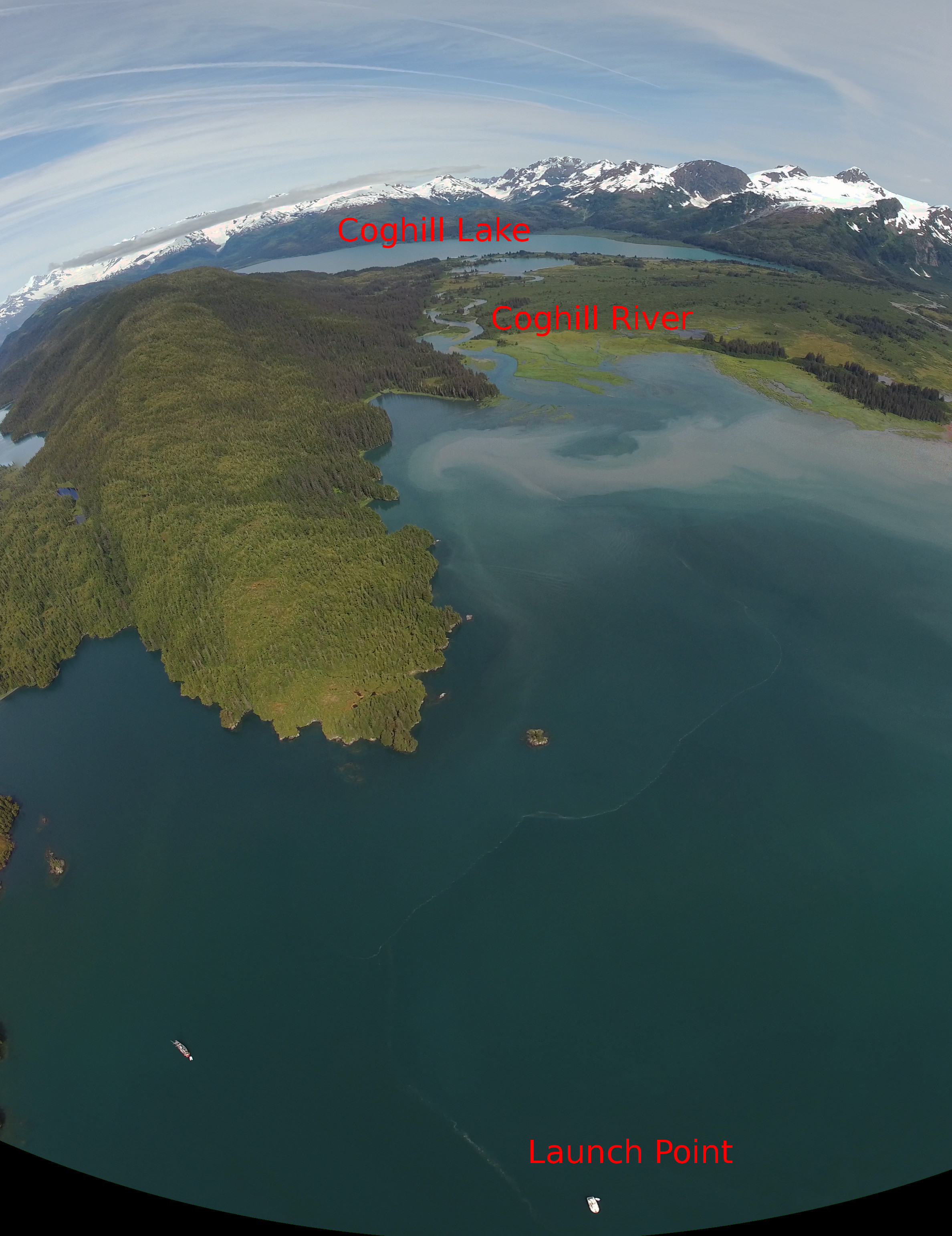 Readers may notice the light-green water color seen in some of the photospheres — that's caused by glacial till, a fine powder that, were it dry, would have the consistency of flour. It comes down from the glaciers and, because of the small particle size, remains suspended in the water for a long time.
