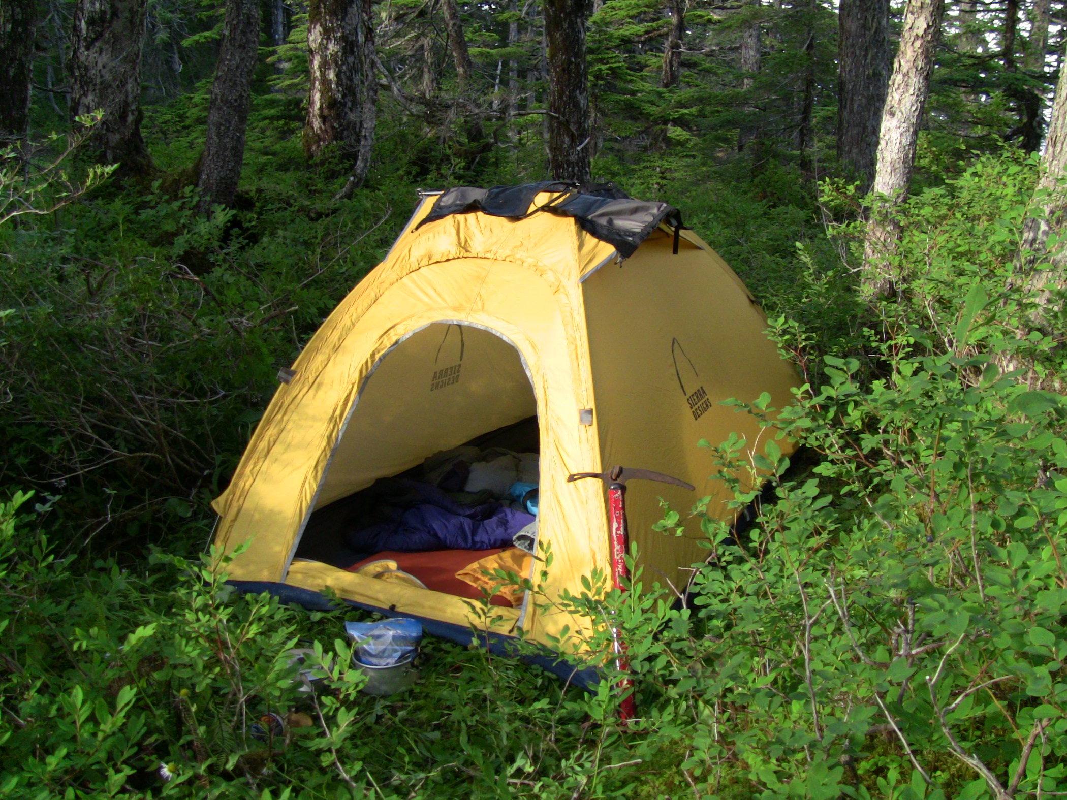 In the above image, that greenery around my tent is blueberry bushes, so when I arrive and set up camp, I take a break and eat blueberries. I don't feel like I'm cheating the local bears out of their natural food source, because there aren't any bears on the island.