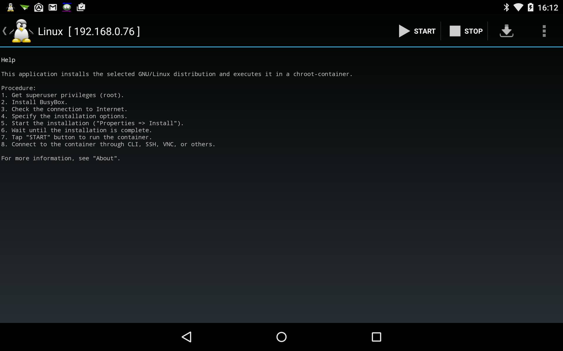 - Assuming there are no show-stoppers during the installation, it should be possible to return to the main Linux Deploy display and click "Start", which will activate your Linux machine.