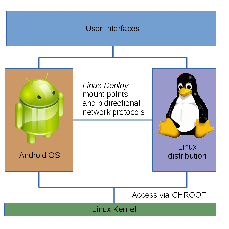 - The reference to CHROOT tells us that the Linux virtual machine has its own operating environment and resources, but it's running under the same Linux kernel as Android. Because Android uses an up-to-date kernel, this won't be likely to cause any compatibility difficulties.