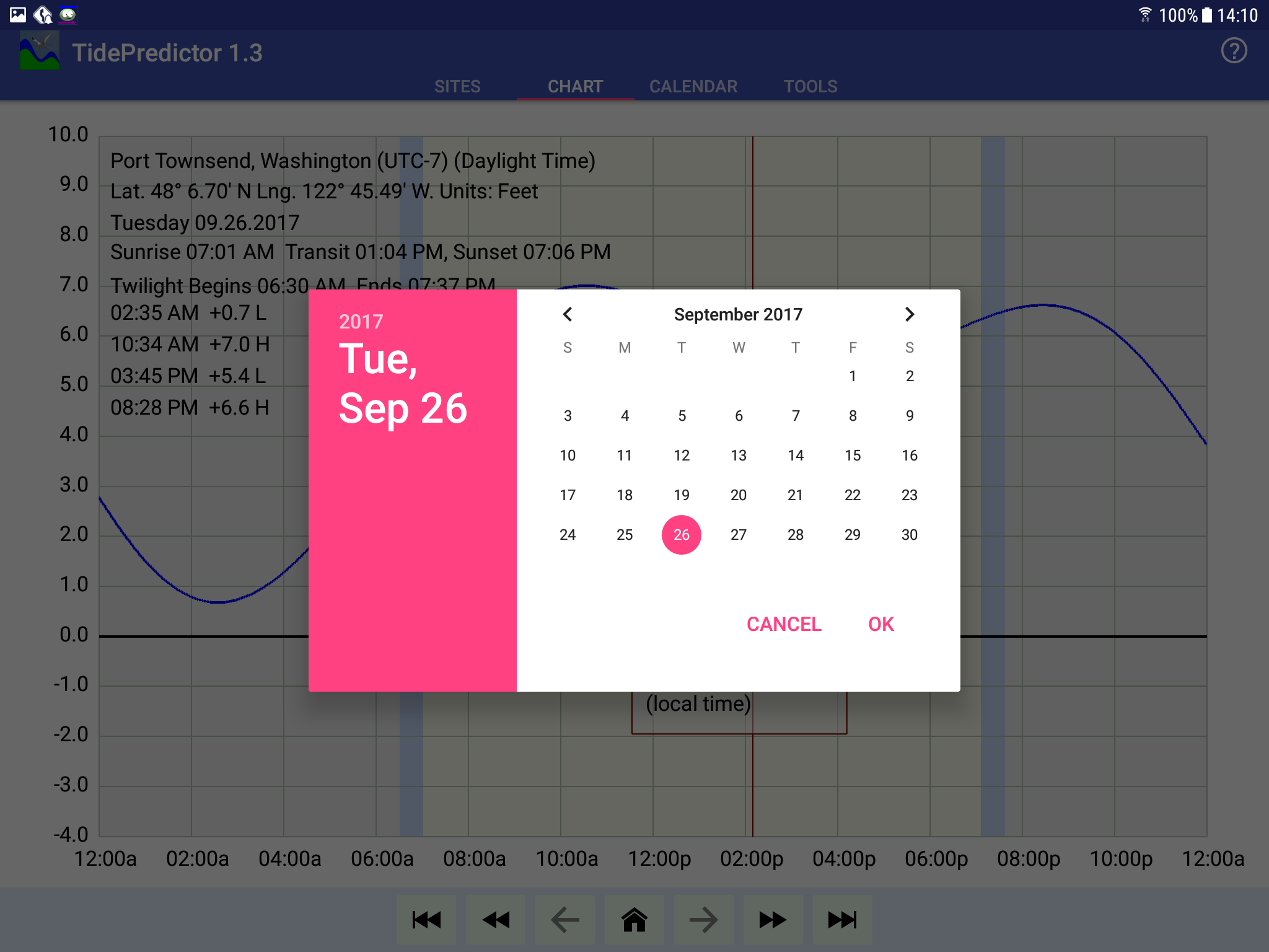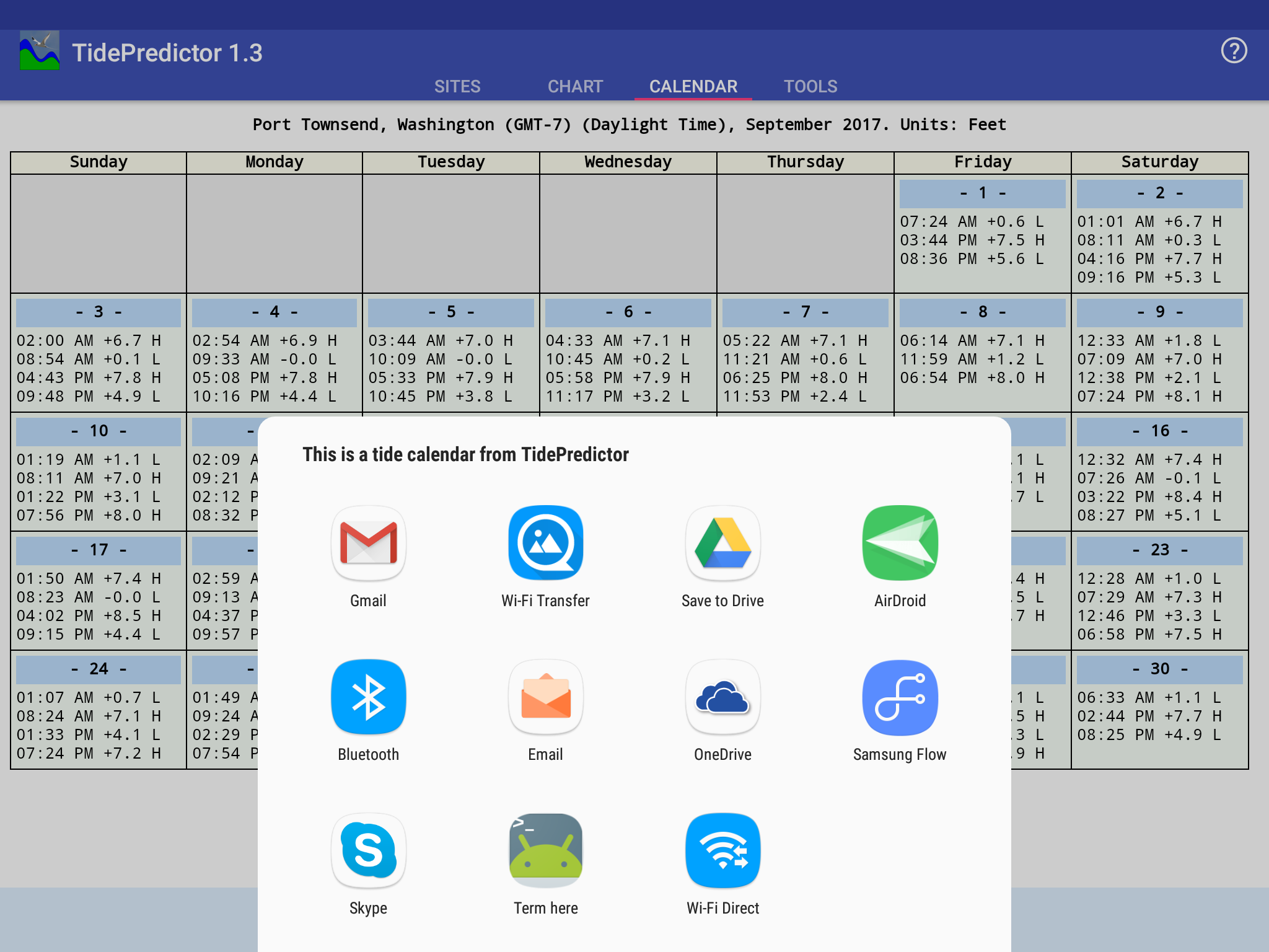 Download TidePredictor from the Google Play Store. You can also download it here, but the Google Play Store install is a better choice because you get automatic updates for as long as you have the app.