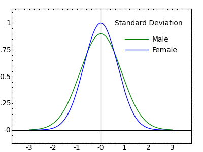 Although the male and female curves in Figure 4 look much alike, if one looks closely at the region around SD 2.5, corresponding to an I.Q. of 137.5 (very bright), one might see a male-female ratio of 3:1, and the same ratio at an SD of -2.5, corresponding to an I.Q. of 62.5. This distribution would mean more bright, and more dumb, men than women, and agreement with the observation that male and female I.Q. scores tend to be equal.