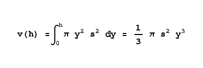 To get the cone's volume, all we need do is integrate all the intermediate disc area values between 0 and a particular height