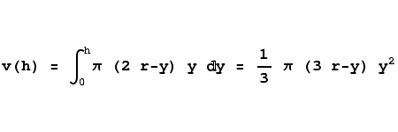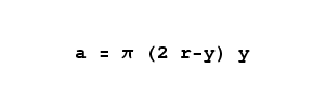 This equation accepts y values between 0 and 2r, the diameter of the sphere, and returns the area of the horizontal disc represented by that vertical y value.