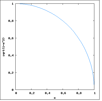 At the time I was able to picture this function's curve (and draw it on paper), so I knew it was a quarter-circle. I realized if I could get the precise area under the curve, I would have π/4 to a fare-thee-well. I proceeded to write increasingly sophisticated hand-computation algorithms to efficiently measure the area. Shortly thereafter the first hand calculators appeared, and I began to straddle the fence between purely human calculation and the computer variety.