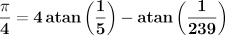 An example. In 1873, a masochist named Shanks used this equation (Machin) to compute the value of π to 707 decimal places: