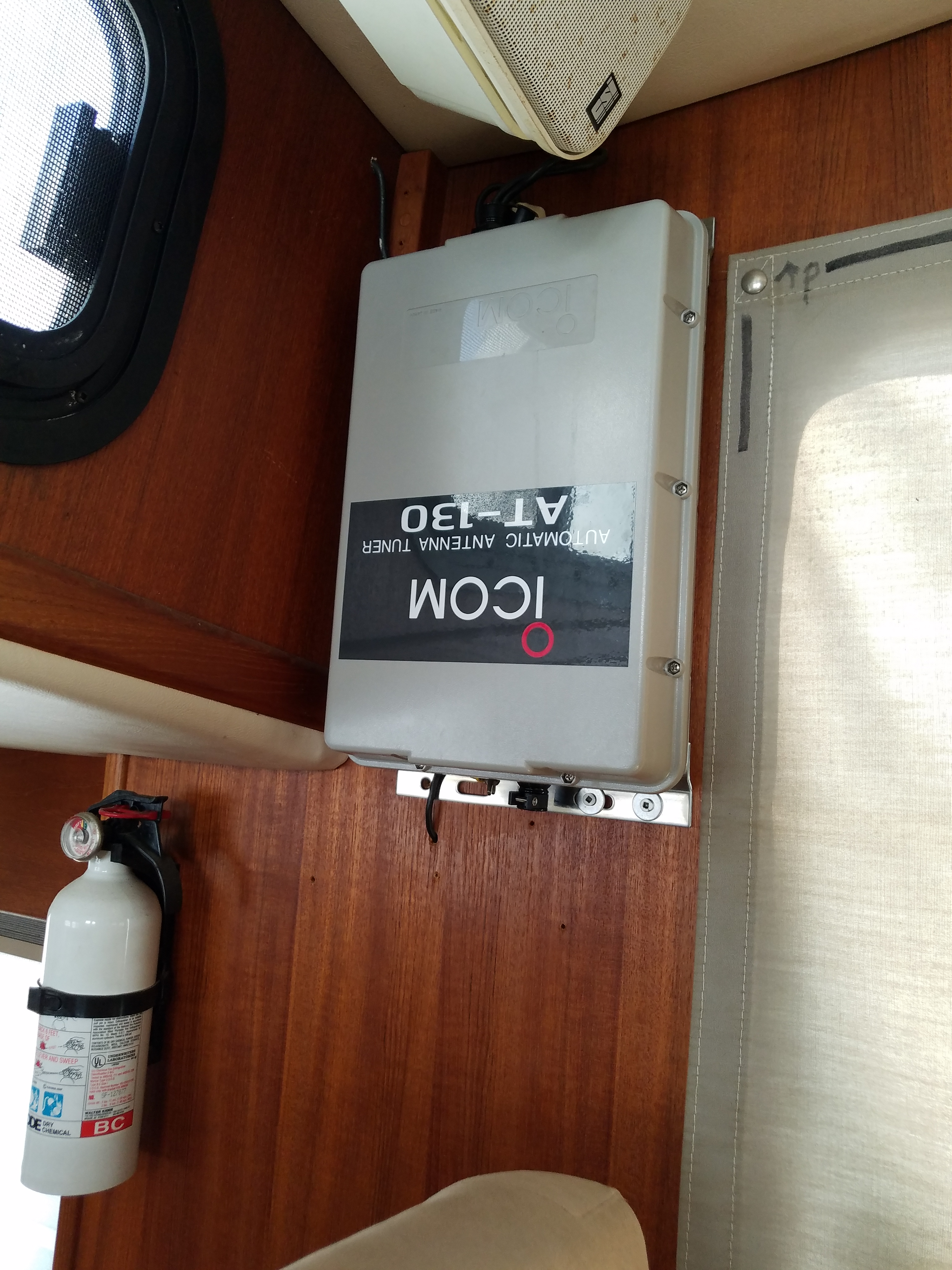 - Icom HF autotuner and 23' mast antenna ready for HF marine radio