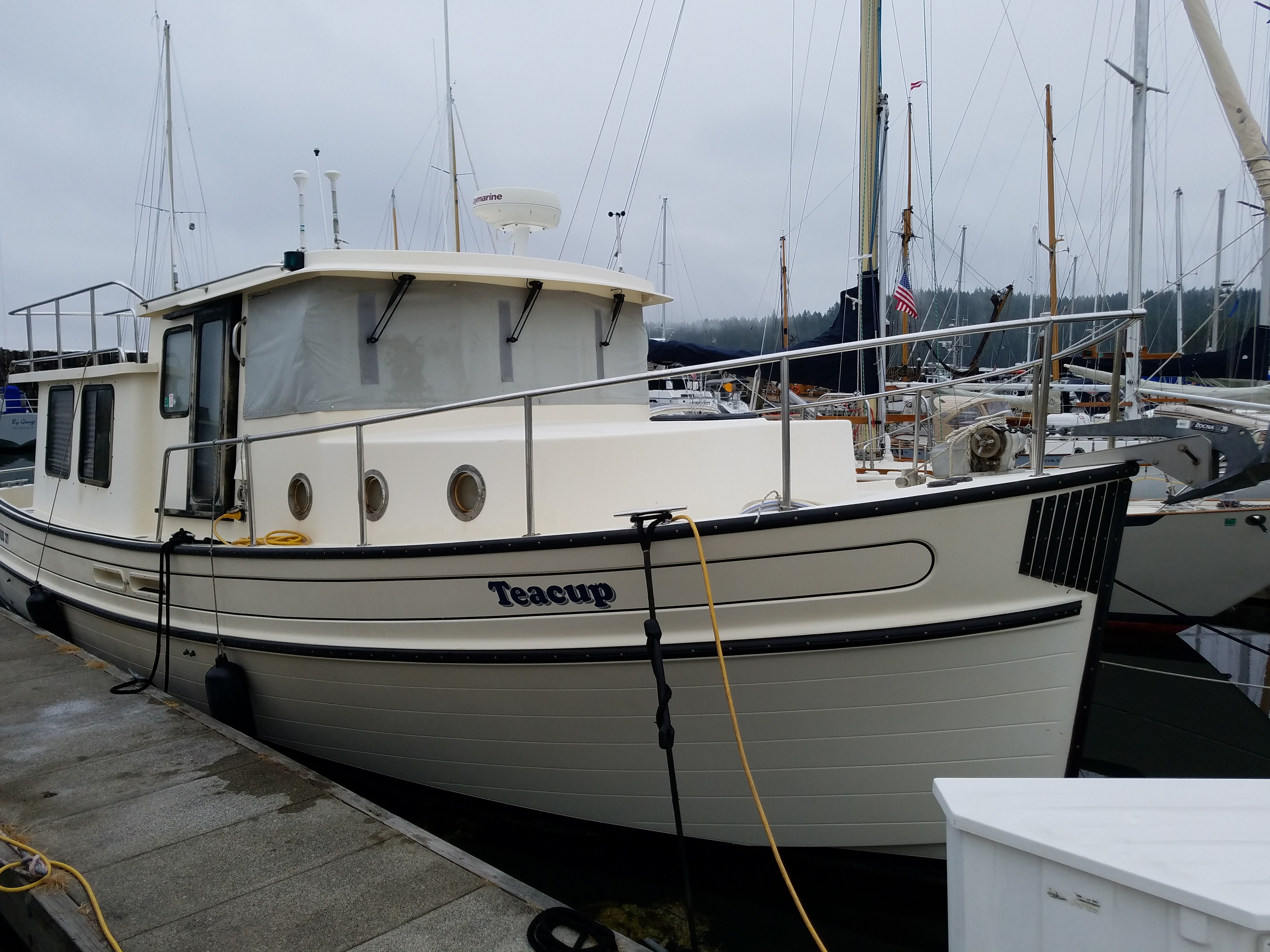 - Heavy-duty anchor winch, new 300' all-chain anchor rode, new Rocna 20 anchor