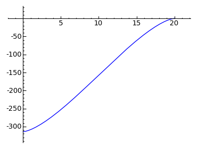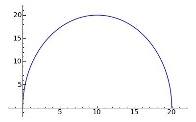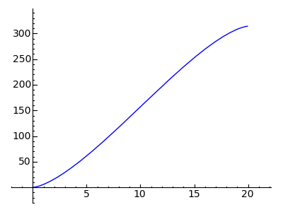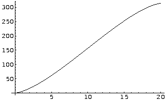 That looks reassuring — it's definitely the profile of a half-circle, and the value at y = R is the tank's diameter of 20 units. Now let's take the integral of "dcyl(y,R)" so we have a function we can use to compute partial circle areas: