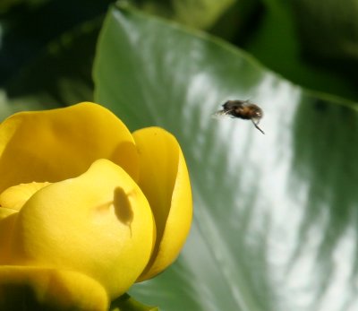 Symbiosis between flower fly and flower. The flower feeds the fly, the fly spreads the flower's pollen. (author, Alaska, 2006)